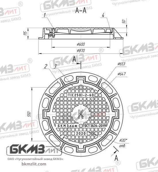 Тяжелый люк Т (С250)-2-60-4 четырехушковый (ГОСТ 3634-2019) с запорным устройством производится на заводе «БКМЗлит» из серого чугуна и подходит для установки на городских автомобильных дорогах. Номинальная нагрузка составляет 25 тонн. Возможно изготовление модели без запорного устройства, а также двухушковое исполнение. Доставка в Смоленск.